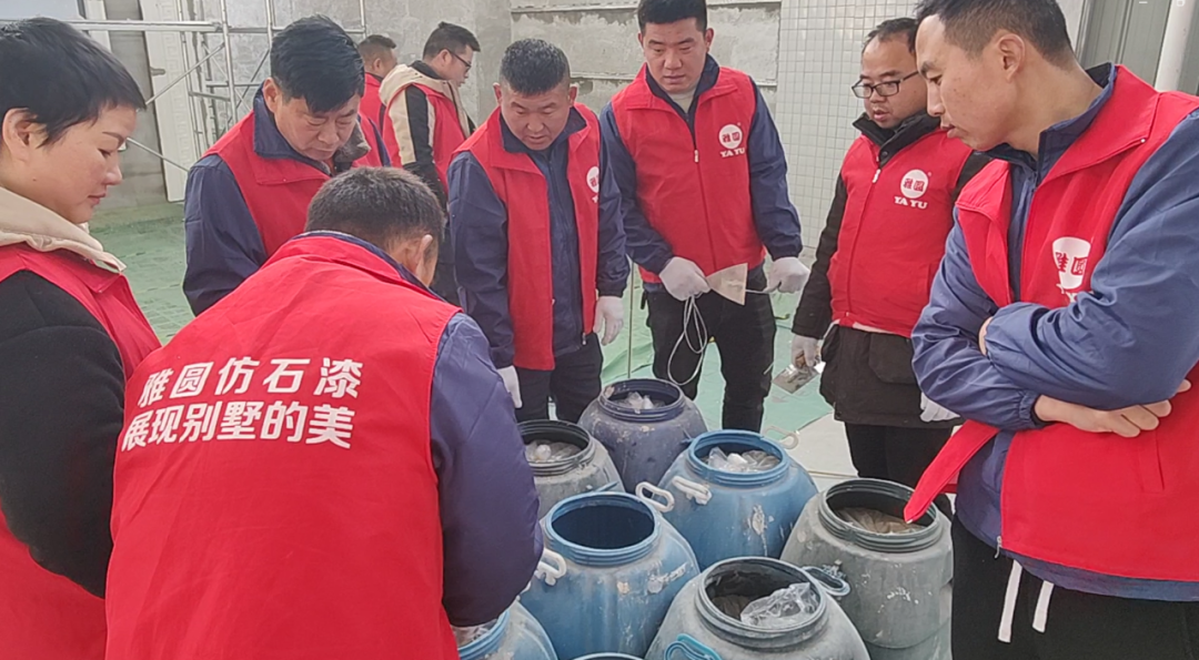 由我们安徽雅圆北区肖总带领来自安徽、河北等周边地区,外墙仿石漆的经销商,施工师傅、油漆工等参观雅圆仿石漆样板展厅,在这里,每一块仿石漆板都宛如天然石材的缩影,却又散发着独特的人工智慧光芒