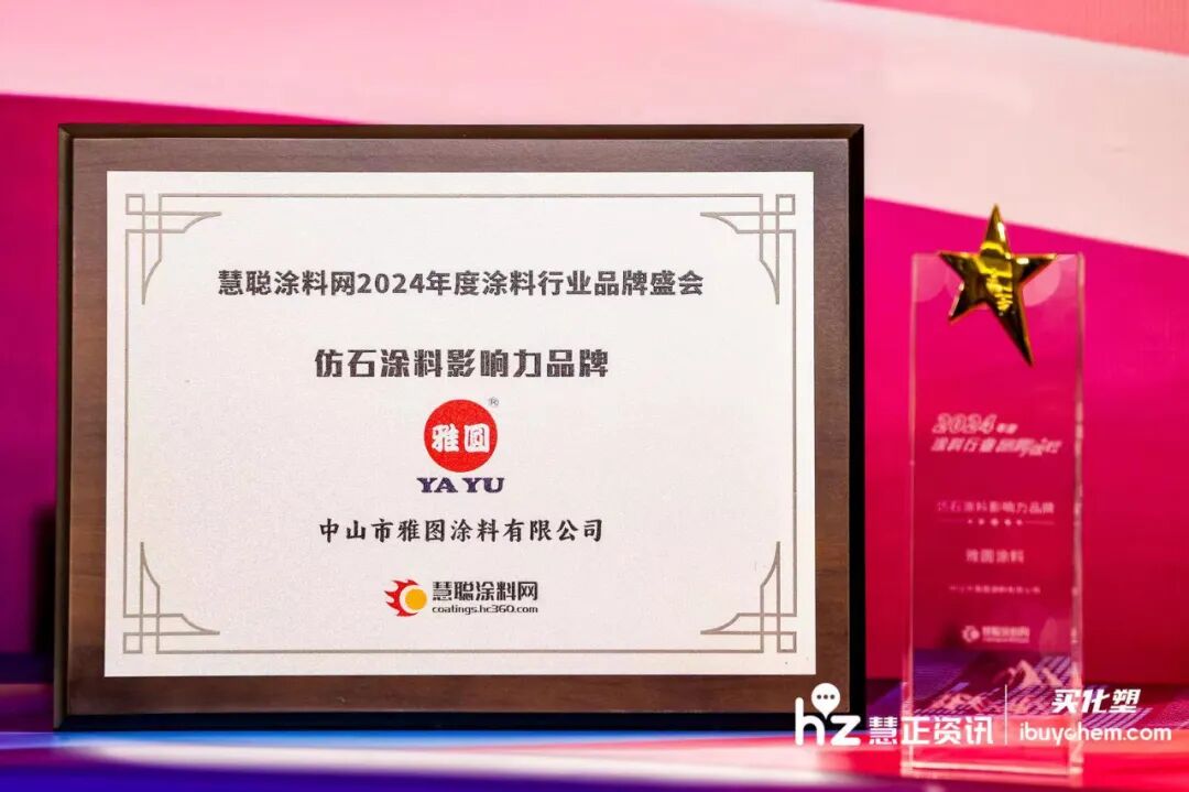 中山市雅图涂料有限公司旗下品牌雅圆涂料,作为涂料行业的卓越品牌典范,以创新推动新质生产力发展,坚持高质量、可持续、品牌化发展的雅圆涂料成功荣获“仿石涂料影响力品牌”,用实力彰显出雅圆涂料的品牌影响力。